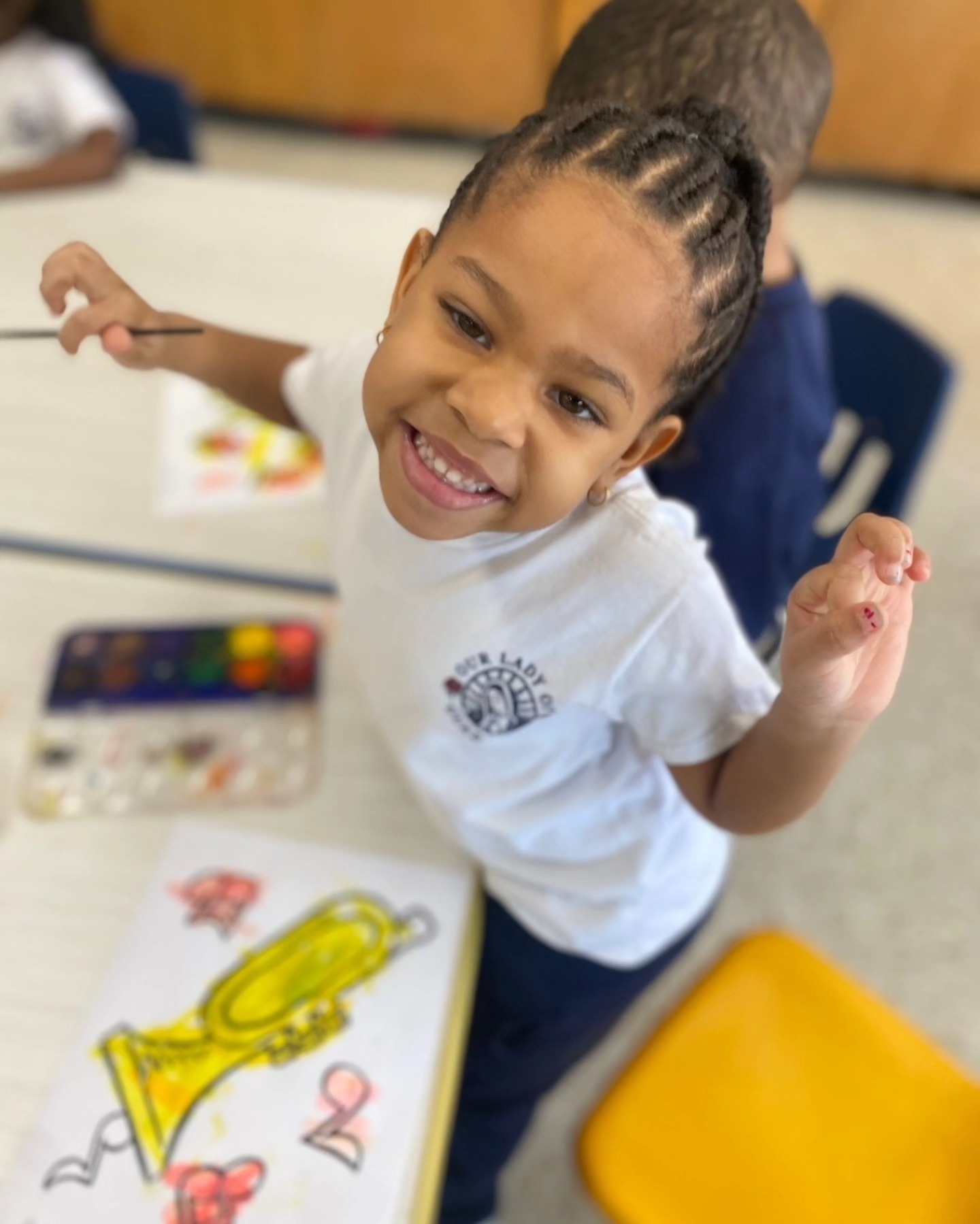 Kindergarten students at Our Lady of Guadalupe are fortunate to participate in the Boston College TWIN-CS (Two-Way Immersion Network for Catholic Schools) dual language learning experience. Students are immersed in hands-on science, English and Spanish language arts, and math experiences in both English and Spanish languages. Students learn to read and write in both English and Spanish and grow in their socio-cultural skills as responsible and compassionate citizens of our global world. As members of Our Lady of Guadalupe's faith community, students are also educated in a richly Catholic environment in which each child is celebrated for their unique gifts, talents, and cultural identities. Kindergarten students also participate in physical education, social-emotion wellness, and art classes to help them grow as well-balanced, happy, and cherished gifts of God.